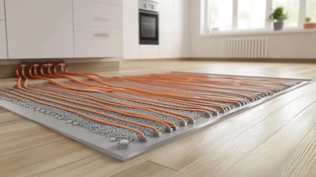 Underfloor heating works by circulating warm water through a network of pipes beneath the floor or using electric heating mats. This system provides consistent heat across the entire room, creating a comfortable and evenly distributed temperature. Water-based underfloor heating is typically connected to a boiler or heat pump, operating at lower temperatures than traditional radiators.